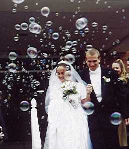 (left) Jackie and Jake running through the bubbles after the ceremony (right) Jackie before the wedding