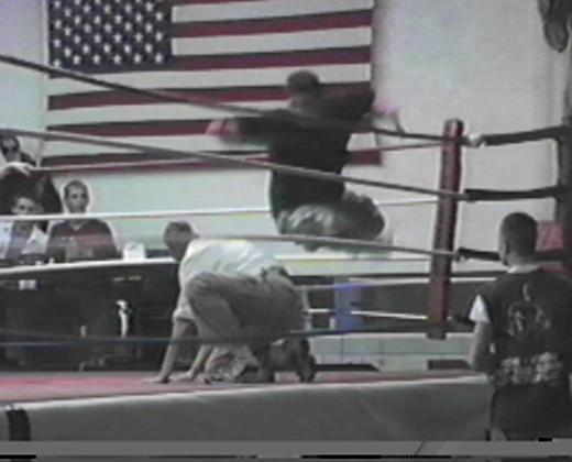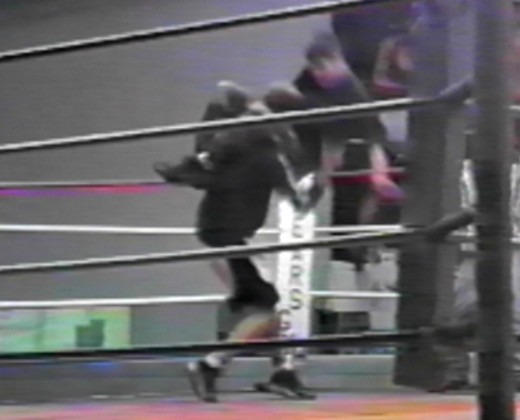 Big Tommy comes off the the turnbuckle