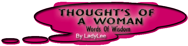 | Hello I'm "LadyLee", thank you for stopping by my site. As a woman I would like to share with you some of my "PERSONAL THOUGHTS" as well as my "WORDS OF WISDOM". Each week you may stop by my site and find out what's on my mind, and take with you my "weekly words of wisdom". Sometimes a simple word can help brighten someone's day. I hope you will allow me to do that for you. Thank you for stopping by, and remember to do it at least once a week if not more...Be safe, and don't forget to smile. |