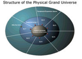 " ... Dr. Neruda: The Central Race resides in the most primeval galaxies nearest the centermost part of the universe. According to Corteum cosmology, the structure of the universe is segmented into seven superuniverses that each revolve around a central universe. The central universe is the material home of First Source or the Creator. According to the Corteum, in order to govern the material universe, First Source must inhabit materiality and function in the material universe...