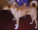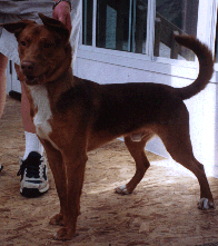 CASSIDY This is a young dog that was found wandering in Shelbyville, IN. His front foot had been crushed, probably by a car. We called him Cassidy (as in Hop Along...). He is probably a Basenji / Shiba Inu mix. He's a great dog!