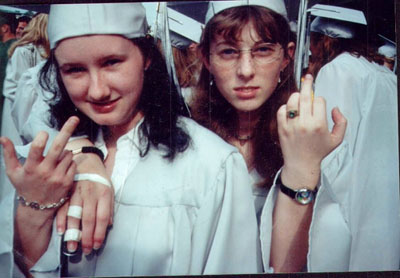 Me and Jenny our Junior year in Mrs. Franzers class.. you think she'd be smart enough to know it's a dangerous thing to sit us next to eachother but i think she did it for entertainment reasons.