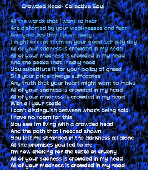 I was thinking it's amazing all the shit I put up with from people- bfs/guys, friends, family and I’ve just about had enough I’m being pushed into crap that I’m really not sure about but I’m going through with it because "they deserve it" fuck. and why am I given a voice if no one fucking listens to it? half the people I talk to is like talking to a wall! well.. maybe not a wall is easier to talk to at times and whats sad is the people that this is all about.. if they read this they are so ignorant they wouldn’t think it's about them-GET OVER YOURSELVES and the people that it's not about will call me worried I’m mad at them.. ok I’m going to go get more to drink because this pretty much killed by buzz