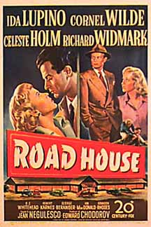 Having brutalized women in two successive films, it was time for Widmark the romantic to take center stage. Road House, directed by Jean Nugulesco, cast him as Jefty Roberts, the owner of a restaurant-bar managed by his best friend, played by Cornel Wilde.