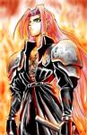 I muttered. "Whats wrong with me?" I spotted someone emerge from the inn and watched him, wandering. He was tall and strong like Sephiroth but his hair was black and was only down to his waist. He wore a black cape and his clothes were black and a deep crimson color. He carried not one sword but two. He spotted me staring at him and walked towards me. As he drew closer I could see that his eyes were a deep brown, almost black. "Do you know who lives there?" he pointed. "I do," I said. "You're Raven?" he asked. "Yes," I answered. "Who are you?" "I was sent here for you," he told me. "For me? You have got to be joking," I laughed. "Do I look like I'm joking?" he asked. "Not really. But I'm not going anywhere," I crossed my arms. "I was promised a very valuable materia if I brought you back with me," he informed me. "Materia?" I asked. "The shadow materia," he said. "The shadow materia is mine," I blurted out and immediately regretted it. "Not anymore it isn't," he grabbed my arm and I jerked it free. "You're not taking me anywhere!" I yelled at him. He looked me over and smiled, "Its no wonder he wants you so bad." I slapped him hard in the face wiping the smile away. He grabbed my wrist and squeezed it hard. I swiped at him with my dagger, forcing him to let go or be cut. I ran back to the house and he chased after me. I seen Sephiroth and ran to him, hiding behind him.
