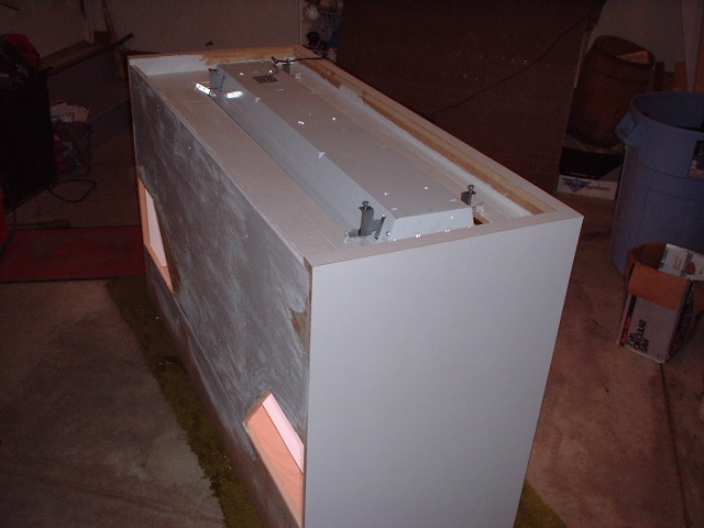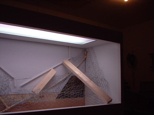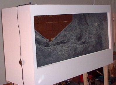 The terrarium was then laminated in a Formica color and pattern of the customers choice. areas such as the back, top and bottom (which wouldn't be seen) were then painted to match the laminate. The light fixture was also installed at this time.
