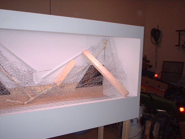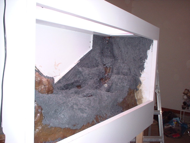 The terrarium was then fiber glassed and resinated to achieve an array of shades and textures. the plumbing for the waterfalls was also installed.