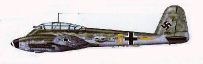 The Messerschmitt Me 410 was based on the design of the prevoius Me210 twin engine heavy fighter. Nicknamed the Hornisse (Hornet), Me410 had wing slats and a lengthened fuselage. Both the Me410 and the Me210 carried a crew of two who were seated in tandem beneath a single framed canopy, Six Me210's were modified to Me410 standards, and these were joined in flight testing by the first true Me410V-1 Prototype in late 1942. During 1943, 291 Me 410s were built, and these were followed by an additional 722 in 1944. The Danau Flugzeugbau in Hungaru also built 34, Me410s in 1943 and 74 in 1944 before the plant was destroyed by allied forces.