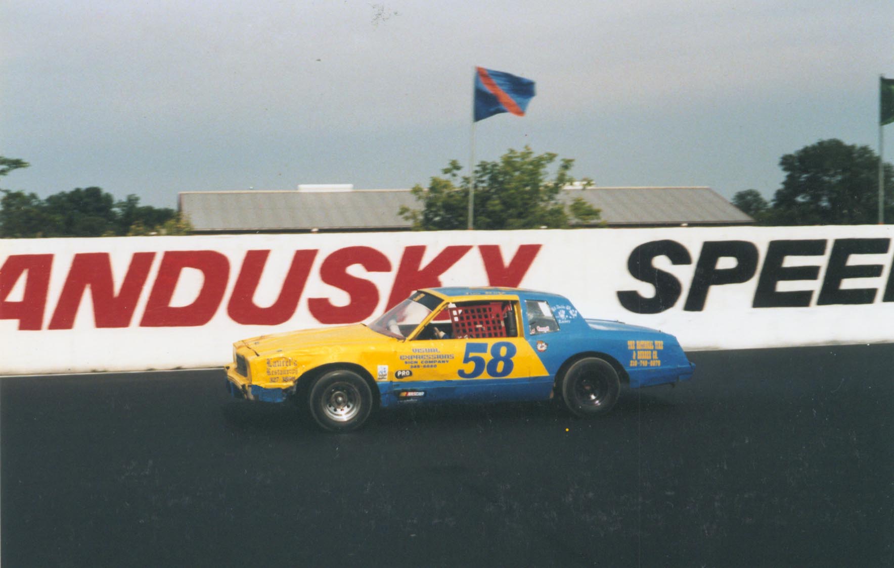 Running on the back stretch at Sandusky Speedway in the 1979 Cutlass Pure Stock. (129 kb)