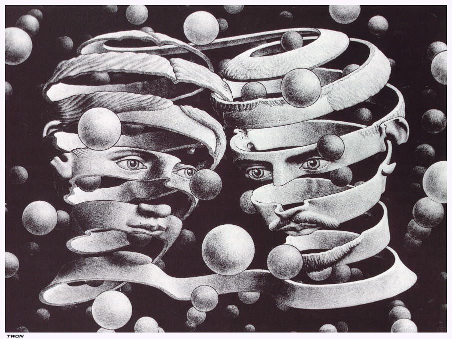 M.C. Escher 1898-1972 These are some M.C. Escher drawings for your enjoyment. Maurits Cornelis Escher was born on June 17, 1898 in Leeuwarden, Netherlands. After initial interest in Architecture, he continued his formal education in Graphic Arts. You can click on the thumbnail photo for an larger version of the picture. Also take a look at my Optical Illusions page, these are also a lot of fun for both young and old. Enjoy!!!