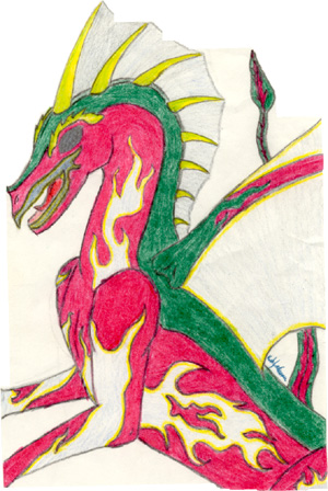 I know that's a pretty odd name for a drawing of a dragon... but if you look at it, it really does look like Rudolph gone badboy!