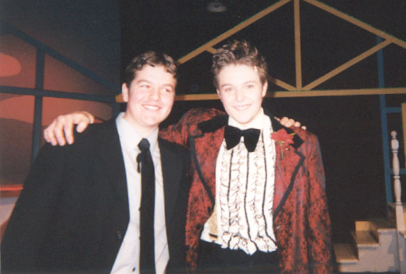 Heather and I really bonded with the shortness and the "lesbian dancing" we had to endure during Footloose. This is us in our scary "prom" dresses and, stage make-up.