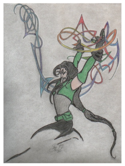 Appearance: Wears black trousers, generally close to the body, a gray, sleeveless shirt with a green vest. He wears two sets of gloves, a green pair which reach just below the shoulder and a black pair with varying fingers removed. His black hair is ankle length and tied with two green ribbons. He carries his thieves tools in various pouches on a belt around his waist. Background: Orphaned at birth, Rufio was raised by a small clan of mages who practiced the dead magic art of the Sigil. When the clan was discovered and destroyed by the townspeople for fear they would upset the gods, Rufio managed to escape and honed his skills on the streets as a thief. Strengths: Magic and acrobatics. Rufio's talents with the Sigil are extreme and exact, his magic spells are unbreakable, though rarely are their effects permanent. He uses Saturn's Magic Box and believes from his clan raising that he draws his power from that planet. He's an exceptional athlete and acrobat, so tumbling, jumping and climbing are all skills he's masterful of. Weaknesses: Though a master of the Sigil, it's the only magic that Rufio knows. He carries a mastered silence rune, but doesn't know how to use it, and is vulnerable to any spell cast from any runestone. He's also deaf, so it can be a simple task to sneak up on him if he can't see you in his peripheral vision or in a reflective surface such as water or glass. Other: The colors of Rufio's Sigils demonstrate not only their power, but their purpose. An elemental spell will take on the colors commonly identified with such spells: red and orange for fire, blue and white for water, green and brown for earth and white, blue and green for wind. While possessing no true elemental strength in magical base, Rufio will more predominantly trust an elemental earth based ally, since Saturn's element is earth. Runes Mastered Silence Special Skills Rufio really only has one limit skill. It comes in three parts, but requires knowing the target's name: I. Signed - using Saturn's Magic Box (an invisible numerical chart), Rufio will draw the Sigil of the intended target's name, which focuses the magic on that person alone. II. Sealed - once the Sigil of the person's name is drawn, Rufio will then cast a spell of holding, which paralyzes the victim making them unable to either speak or move. III. Delivered - the last part depends upon either Rufio's mood or the request of someone he's with. His attack at this point can vary between death and any kind of permanent status, such as blind, silence or confusion. Signed, Sealed and Delivered's main advantage is that no matter where his target may be, Rufio can still cast any form of magic upon them simply by knowing their name. Distance and obstacles are irrelevant. Guardian Stats OBSIDIAN Obsidian is a demon trapped within a Sigil that forces him to use his powers for a worthy cause. He was given to Rufio by one of the mages before the clan was destroyed. He has no attack, but acts as a messenger, repeating someone's spoken words in telepathy, so Rufio is always aware of any conversation around him. |
