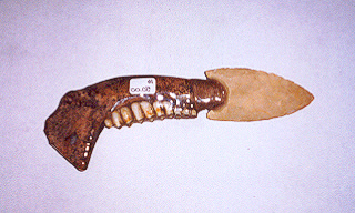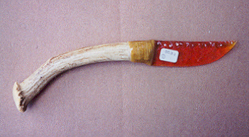 Photo's of Danny's Knives and arrowheads. Made from different types of flint. The knife handles are made from Deer antler or cow bone.