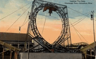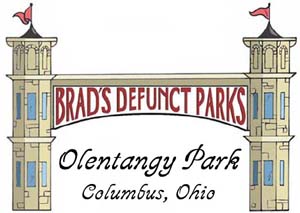 Olentagy Park is located in Columbus, just north of downtown. Traveling along High Street, keep an eye out on your left for the entrance to Olentangy Village Apartments. This is the very same property the park was located on. The only reminders, however, are the old trolley line right of way (including the bridge area) and some old fences. A huge stone arch used to tower over the trolley entrance. It is a very peaceful place, and a nice stop along one of the bike trails in that area. The property now known as Olentangy Village Apartments was once an amusement park full of excitement, beauty and magic. Today, many of it’s longtime residents, as well as newcomers, would agree that the Village possesses a tranquility and charm seldom found in apartment settings. robert M. Turner founded the park in 1880, beginning with a tavern, picnic grounds and swimming. The Columbus Railway, Power and Light Co. took control in 1895 and operated the tavern for a few years. In 1899, the Dusenbury brothers from New Lexington bought 100 acres of the park, and began to add attractions. Over the next few years one could find a restaurant and colonnade, figure 8 coaster, row boats, bowling alleys, zoo, Japanese village, and the largest theatre in America at the time. Two more coasters were added in 1909, the Whirlwind and Red Devil, followed shortly by a Loop-the-Loop, which was one of a few primitive looping coasters. These did not last long due to the lack of technology and extreme forces on riders. Arrow Dynamics was the first company to successfully re-introduce the loop in 1975, though it initially took on a corkscrew shape.