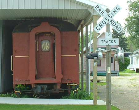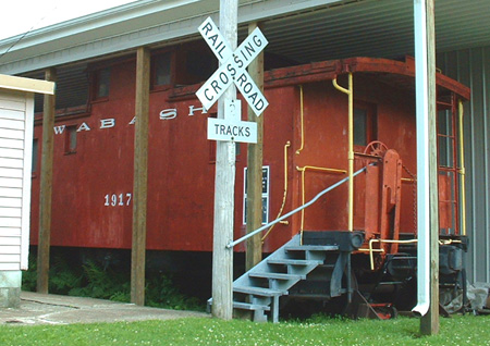 Photos of the Wabash depot and rail cars on display. The waiting room was rebuilt in 2005, and had been missing since N&W removed it years ago. I got the task of creating blueprints based on just a couple photos (see below). This station was a stop on the 4th district line from Chicago to Toledo. The last train ran in '86 and the tracks were removed along most of that route. I repainted the passenger car and lettering in 1994 to match the original N&W scheme, and retouched the lettering and roof in 2003, 20 years after it was donated to the museum. The car, #1007 (formerly 1732) was primarily used in Chicago from 1941 until the late 70's. The class CF caboose #518193 will also be receiving its proper lettering soon, but not before years of faded paint and rust are scraped away. "Wabash" was painted on it since we wanted one car representing the line's major carrier over the years. The Wabash had a few of these, but there's no evidence that this caboose was one of them.
