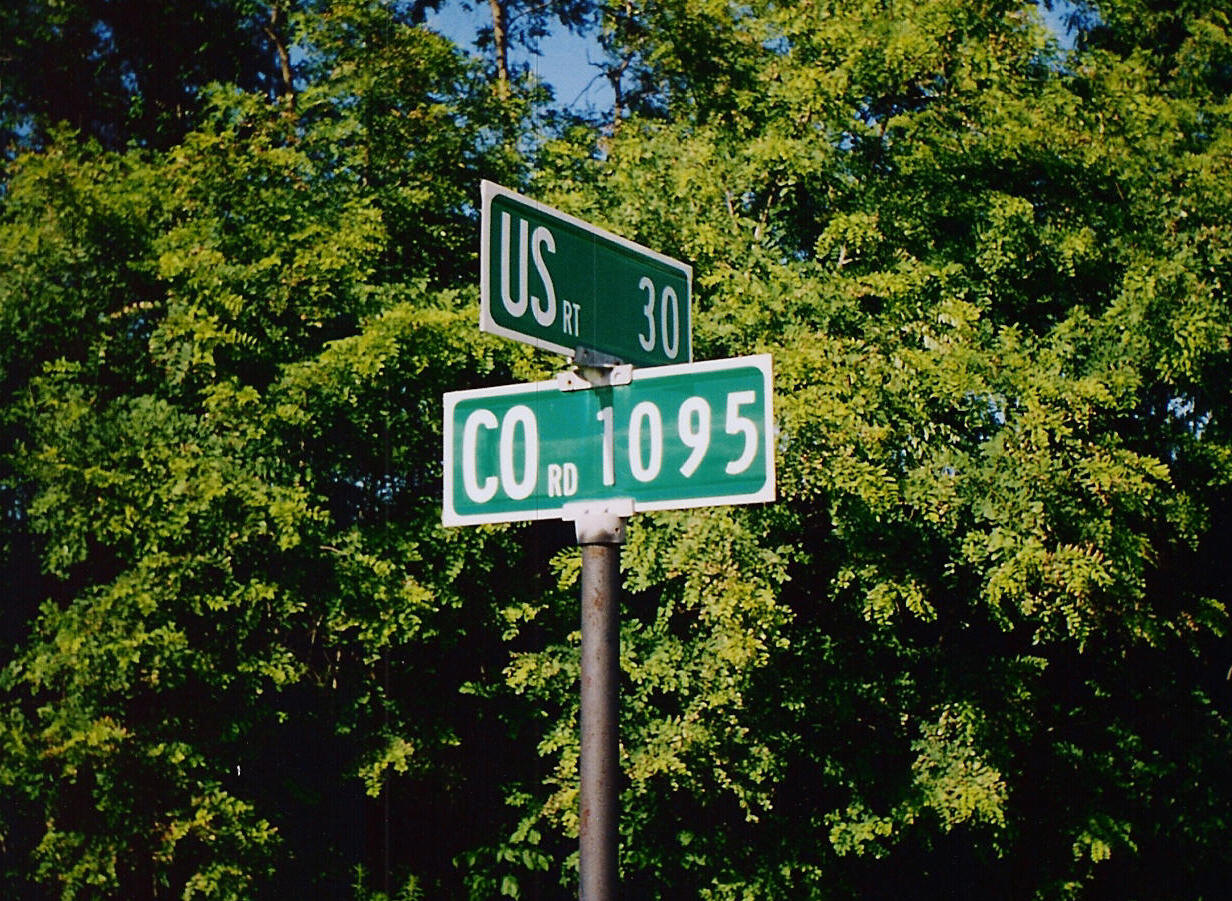 This is a picture of Ashland County sign blades at the corner of US-30 and County Road 1095 in Mifflin Township. James Schul took this picture on July 12, 2003. |