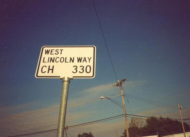 This is a special marking for Wyandot CR 330, probably because (1) it's the old routing of US 30, and (2) it's the Lincoln Highway. The other side of this sign is the same, except without the black border line. Taken 10/18/03 by James Schul. Thank you! |