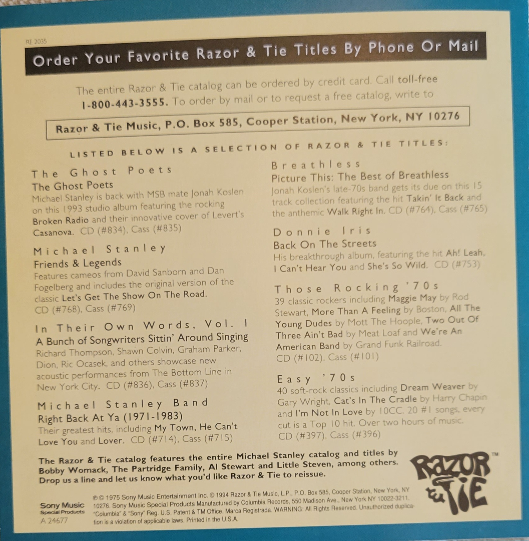 Photo by Michael Stanley CD Booklet back ![]() |