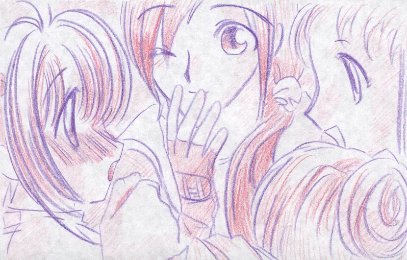She screamed. Sakura turned to her direction, and she too, screamed.