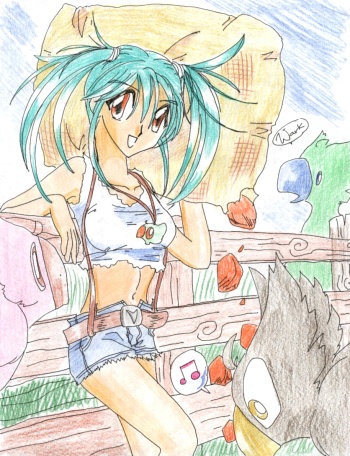 She was about the age of fifteen, had two blue ponytail behind