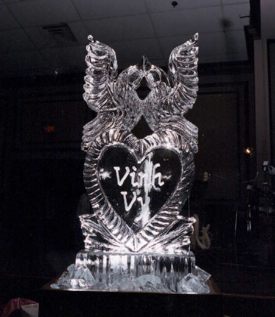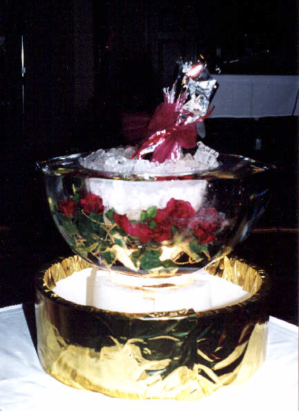 Top Row: ice sculpture *brrr*, cake table, ice bowl with champagne bottle