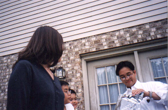 (above) Larry opening their prize.