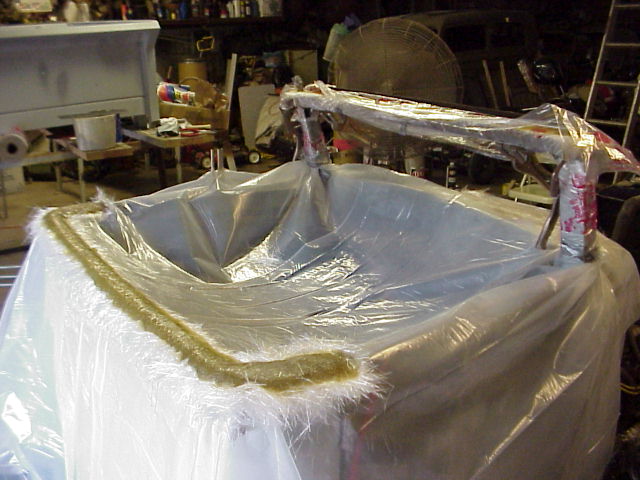 Once the top is complete I baby powder down,cover up good, surgical gloves, respirator on and face shield. Grind the inside and finish glassing. I will put mounts in to lock the top down when its all finished.