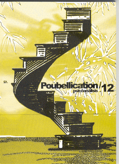 POUBELLICATION 11 Editorial El tiempo del relato, Miriam Pedernera Una experiencia restificatoria, Susana Kaplan El sujeto deseante, Liliana Ferrari Modalidades de construccion de las estructuras freudianas de las psicosis, Adrian Ortiz Yukio Mishima, del vacio a la escritura, Norma Gentili Teoria de los nombres propios, Alan Gardiner >