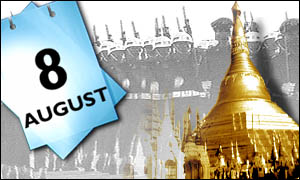 August 8 - The famous 8-8-88 mass uprising starts in Rangoon and spreads to the entire country, drawing millions of people all over Burma to join demonstrations. Many died when troops open fire on the crowds. The following military crackdown killed thousands of innocent civilian. |