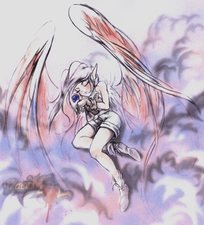 A wonderfully pale rendering of an angel among the clouds... This work is by