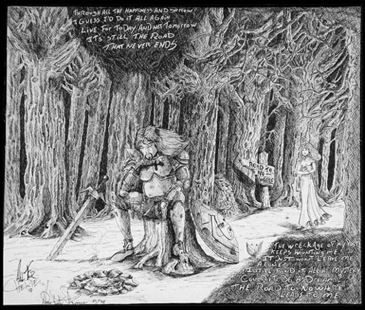 A picture that's absolutely stunning... A knight, on a road to nowhere, about to find his angel..... This one's by Aaron Pierce....