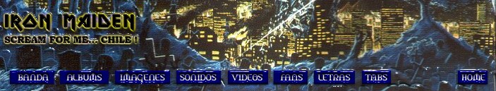 Después de un largo tiempo, en que la página del Iron Maiden Chilean FC desapareció totalmente de la red por causas de falta de recursos, me propuse crear la continuación de dicho gran sitio, y es por ello que ahora pongo a servicio de todos los fans chilenos de Maiden, esta humilde pagina, la cuál contiene casi todo lo que tenia la pagina del FC, y otras cosas más. Espero que la disfruten y me ayuden a contribuir en esta mandando fotos de ustedes con la banda o cualquier archivo o comentario que deseen compartir relacionado a la dondella. Mi e-mail es: chile@ironmaiden.com y así los agregaré a la seccion fans y con ello crecer mas y llegar a ser finalmente el sitio oficial de Iron Maiden en Chile. Un abrazo y...