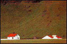 Skogafoss, maisons blanches