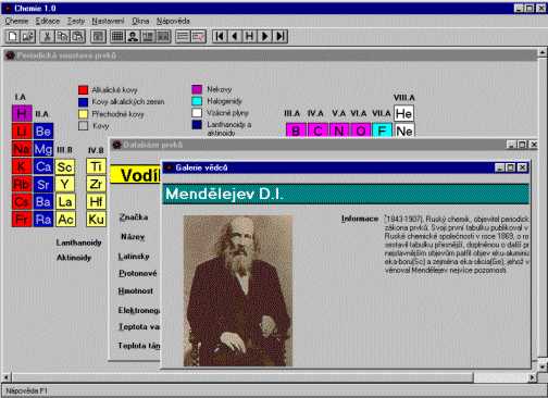 Nyní pracujeme na plně dvaatřicetibitové verzi s kompletně přepracovaným a rozšířeným interfacem a databází. Chemie bude dostupná v ukázkové (demo) verzi zdarma, v disketové verzi jako shareware a v CD verzi jako plný produkt. Jednotlivé verze se od sebe budou lišit především velikostí databáze a množstvím údajů. Plná verze bude mimo jiné obsahovat interaktivní periodickou soustavu prvků, teorii středoškolské chemie ve formátu HTML, databázi nejvýznamnějších chemiků i s jejich obrázky, organickou a anorganickou chemii s graficky znázorněnými vzorci, renderované struktury prvků, výkonný prohledávací engine, zkoušení i s tvorbou vlastních testů, plná návaznost na projekt MFChT. Betaverze by měla být dostupná do konce roku 1998.