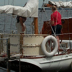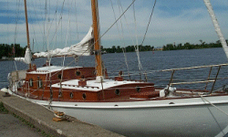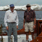 A Doctor from Quebec City laoned this vessel to the Warner Brothers movie set. Norm St-Aubin pictured here with me on the Sail Boat was responsible for purchase and delivery of most of the boat props used in making this segment of the film. Norm was our previouse Rear Comadore at the Sailing club and my favourite employer at the time. |