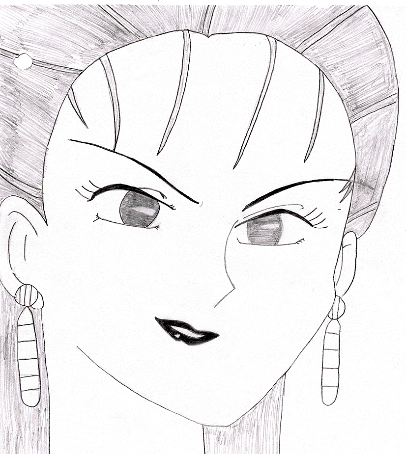 One of my earlier pictures. I like the way this turned out a lot, although the hairline and earrings look really bad, I just love the expression and the eyebrows. I always hated Kaolinite, what a b**ch! And that skanky dress. :P It was sad when she died, though.