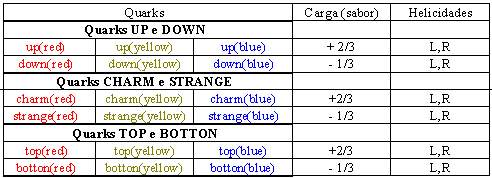 É bom lembrar que existem seis léptons, correspondendo aos seis quarks. Os léptons se dividem em três dubletos (me , e-), (mn , n), (mt , t).