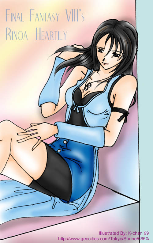 | Rinoa Heartilly | Uploaded: 11 July 1999 RPG: Final Fantasy VIII Comments: Another Rinoa...I know. She's a nice character to draw (I have plenty artworks of her ^^;;). This is my fave so far^^;; Looks smudgy and stuff like that though... T_T |