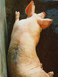 A pig waiting for death with fresh wound marks identifying her to the would-be carcass owner.