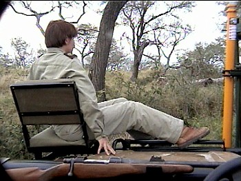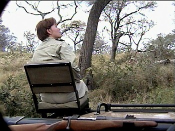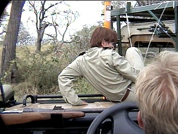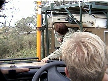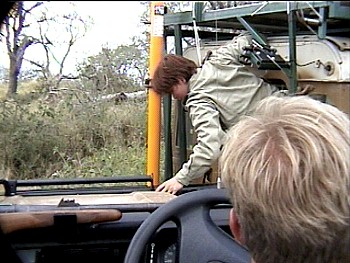 Here is an interesting series of pictures showing our favorite Sabi Sabi ranger, Odie, leaving the Sabi mobile cam vehicle and making her way to the landy...