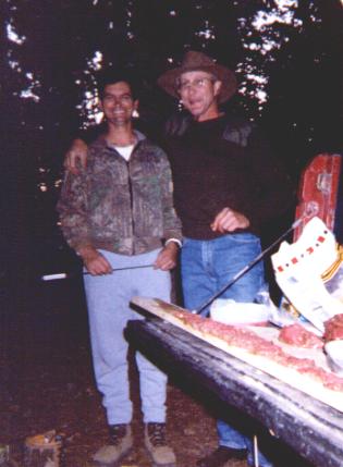 This is a picture taken at our base camp . We are standing in front of our Cook Shack /Bath Shack /Sauna . We only visited it on Sunday afternoon to Monday morning and again Thursday morning at he end of the hunting season .