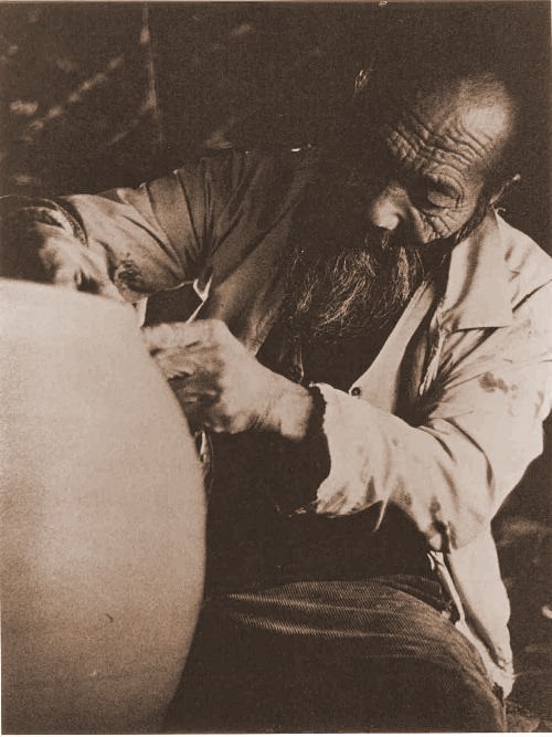 interesting to note the unusual method the male potters use to turn the kick wheels. In this video and the others in this series, the student of
