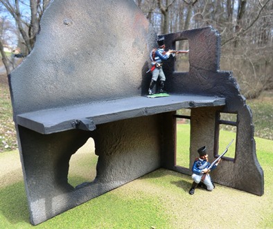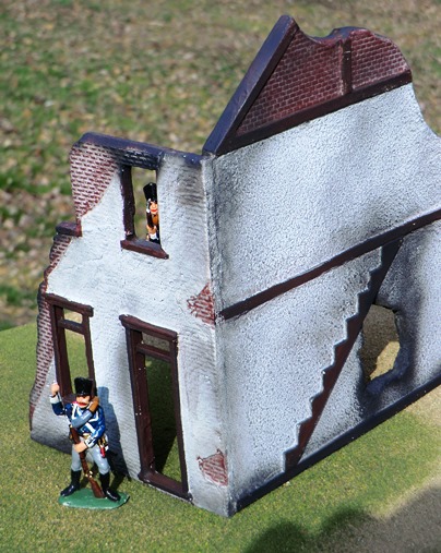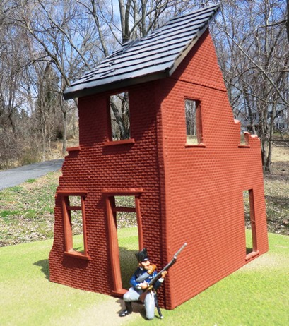 This building is a new addition. It is the same size as the P322 but with stucco on the front, a different side wall and no roof section. The P321 with a P322 set to the right of it forms two consecutive “row homes” with the same front but otherwise different. The P301 would also work well setting to the right of the P321. P321 comes to you completely painted as shown in the picture. It is 5”x7”x8” high. P321 $49.99