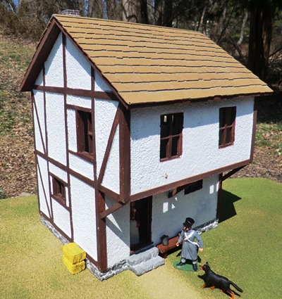 This Tudor style structure will work well from medieval to present but will particularly be a fitting home for your Napoleonic, World War I and II figures. I did a little research on the type of windows and found that casement style windows (hinged along the sides) were most common and can be found as far back as the late 1500s with glass panes.