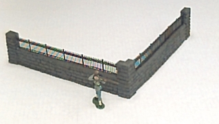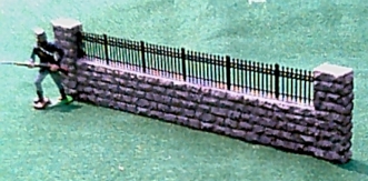 This is one of our most attractive pieces. Stone detail on all FOUR sides and is painted as shown. Although delicate in appearence, the iron railing is a tough, flexible casting with the color cast in. This unit would look good in almost anytime period. It also makes an excellent addition to our Destroyed Church. P026 $13