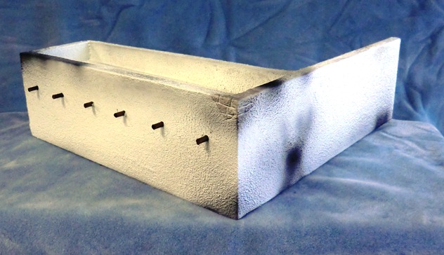 This section is an L shaped corner section with a barracks running along one leg of the model. Measures 13.5 x 13.5 x 4.25".