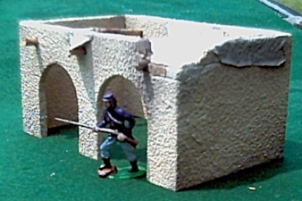 This is a model of the short adobe wall that ran north from the gate house and seperated the chaple from the rest of the compound. It is cast in resin like our WWII buildings and the color and texture match the other Alamo pieces. "Damaged" adobe blocks painted in contrasting colors. 1.5" high P140 $11.00 Page 1 Page 2 Page 4 Page 5 Page 6 Page 7 Page 8 To order Home Page |