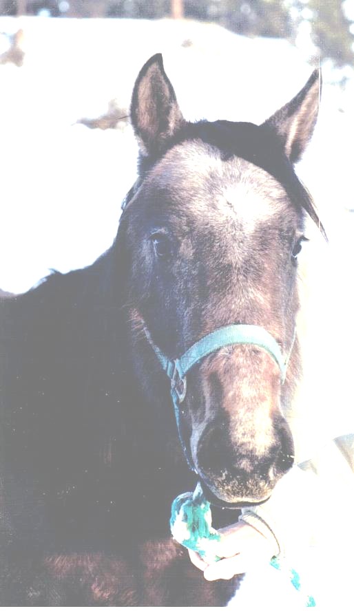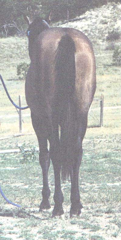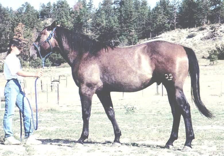 This is a 10 year old, 1275#, 15.2, double bred Dash for Cash horse. Our daughters have been riding him and getting along pretty good with him. He's a finished head horse. When he was put him in the header box- he just loved it! He just thrives on cattle! Our oldest daughter is riding him in the rodeos, he's doing very well for her. She barrel races, pole bends, goat ties, break away and heads on him. Our second daughter was goat tying on him also. She was useing him in the barrel racing and polebending before she started riding the little bay mare for these events.