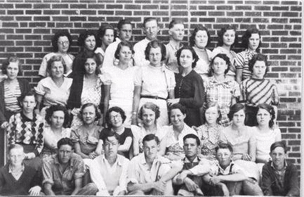 3rd Row L to R: Kathryn Rhodes Pinkston(teacher), Dorothy Jelsma, June Oliver, Ramona Shepherd, Mildred Jelsma, ?, Dorleen Frazier, Ruth Streit